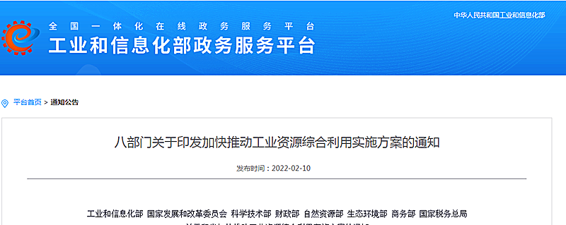 地大熱能地?zé)?多能互補(bǔ)網(wǎng)訊:2月10日,工業(yè)和信息化部、國家發(fā)展和改革委員會(huì)、科學(xué)技術(shù)部、財(cái)政部、自然資源部、生態(tài)環(huán)境部、商務(wù)部、國家稅務(wù)總局等八部門聯(lián)合印發(fā)了《關(guān)于印發(fā)加快推動(dòng)工業(yè)資源綜合利用實(shí)施方案的通知》(下文簡(jiǎn)稱《通知》)。