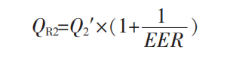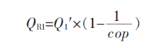式中:QR1 為巖土體提供熱量;Q1′為建筑空調總熱負荷, 2963 kW;cop 為熱泵機組制熱性能系數,5.0。由式(1)得QR1=2370.4 kW, 即巖土體吸熱量2370.4 kW,滿足建筑供暖需求。巖土體制冷量計算見式(2)。