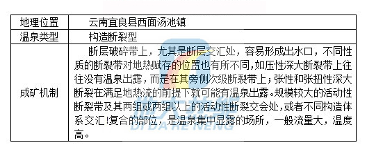 云南宜良湯池溫泉風景地熱水資源十分豐富自流入河水沸如湯,泉水溫度高達70℃,含有豐富的礦物質和微量元素,具有較高的美容、理療之功效,“湯池”也由此而得名。風味獨特的土特產品湯池鹵腐、湯池老醬、湯池豆腐、人工鹽水面等聞名遐邇。